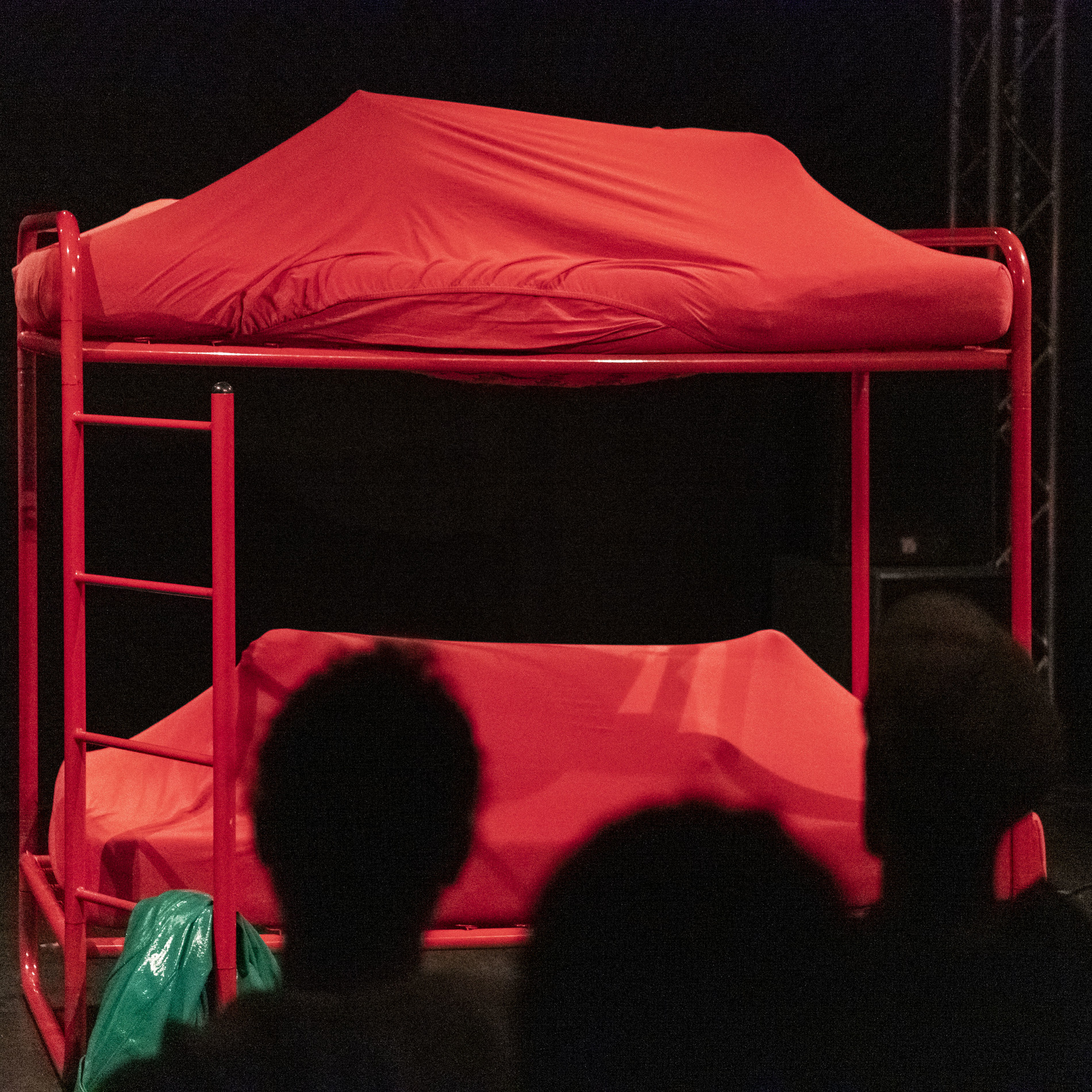 Antonie savoure le vide, joue avec l’espace, Antonie construit. Antonie amasse des objets, s’entoure d’encombrants. Avec eux, iel s’interroge : encombrer, c’est prendre la place. Mais celle de qui ?