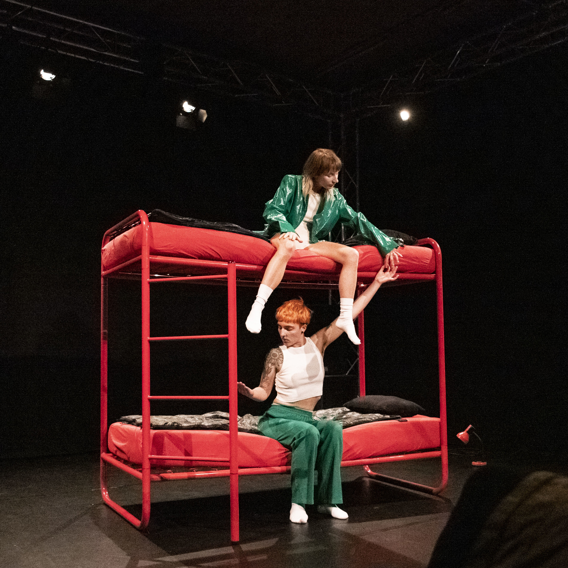 Iel est titulaire d’un Master en scénographie de la Manufacture, après un Bachelor en Option construction à la HEAD et un Master en arts visuels de l’Institut Kunst à Bâle. Ses intérêts gravitent autour des rapports spatio-relationnels des corps présents au plateau ou ailleurs, qu’ils soient humains ou non. L’enjeu du modulable et les questions formelles, de compositions en groupe, de contraintes qui en découlent sont au cœur de sa pratique. Iel travaille avec Lucile pochon depuis 2017 sur des performances et collabore depuis 2020 avec Giulia Rumasuglia en tant que scénographe. Iel réalise également des scénographies pour Mélanie Gobet, Johanne, Caroline de Cornière et a assisté Sylvie Kleiber ainsi que les Old Masters. Antonie s’interroge sur la manière d’être porteurxeuse de projet d’un point de vue scenographique et de manière plus formelle travaille sur la modulation. Iel souhaite dans le futur utiliser le terrain folklorique fribourgeois pour en faire briller son potentiel queer.