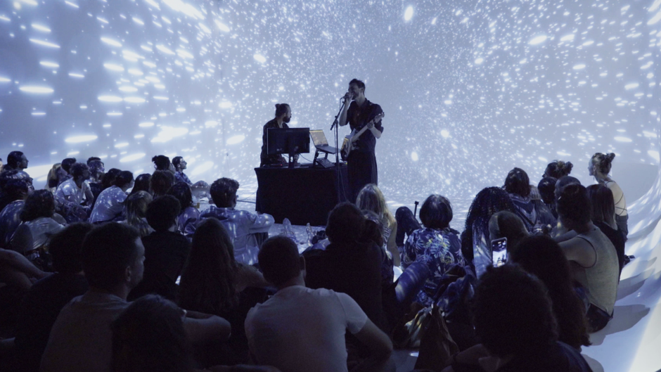 STELLAR DRIFT est un rituel audiovisuel immersif et cosmique performé en live par Gamgie (Visuels) et David-Alexandre Chanel (guitare et voix). Dans ce spectacle, le public va venir s’immerger pour ressentir un état particulier : le drift. Fruit des expérimentations de David-Alexandre et Gamegie, le drift est un état mental qui ressemble à un doux flottement, une dérive qui nous berce, à mi-chemin entre l’hypnose, la transe ou un voyage psychédélique. Dans l’espace, rien n’est immobile, tout est en mouvement. Le nom scientifique donné à cette constatation est “stellar drift”, la dérive stellaire. Inspiré par ce phénomène et par l’esthétique du cosmos, STELLAR DRIFT guide le spectateur par les images et la musique dans un voyage en lente dérive qui l’emmène dans les profondeurs de l’espace.