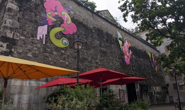 Pour ouvrir un oeil de boeuf sur l’intérieur et matérialiser l’énigme que ce bâtiment représente, trois fissures viennent alors se loger dans la muraille pour laisser apparaître des formes de sa réalité intérieure. Les bribes d’une vie cachée et apparemment sombre se montrent en fait colorées, psychédéliques et organiques. A l’intérieur, loin de l’utilisation première de ce lieu, se répand une énergie de créativité et d’échange entre jeunes artistes du coin et de plus loin. Alex Howling en fait partie et tente, par ce projet, de relier ces deux mondes tout en floutant d’autant plus leur compréhension mutuelle.